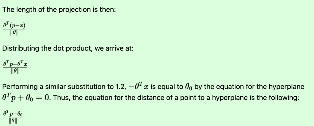 - In the formula for the plane , θ is the normal vector, so it becomes. (p-x)θ / norm(θ) (sorry for lazy typing!). This simplifies to
